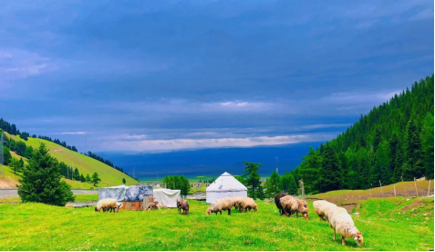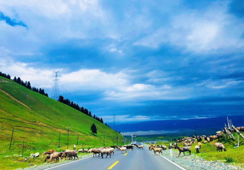 新疆,历史悠久,曾经的西域三十六国、人来人往的丝绸之路,那飞扬千年的风沙,尘封了不知多少传奇;清澈的湖水映着白色沙山和远处雪山的倒影,上下一色,亦幻亦真;公路与白沙山、蓝天和沙漠、草原和牛羊的倒影成为了经典的西部风光。